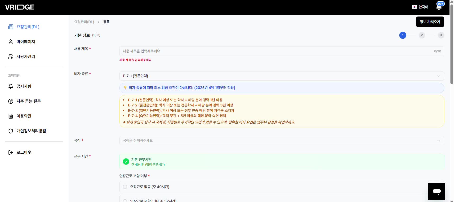 브릿지 플랫폼은 사용자 편의성을 극대화한 직관적인 UI/UX를 제공한다. 복잡한 절차 없이 한국의 고용주가 직접 플랫폼에 로그인하여 몇 번의 클릭만으로 채용 의뢰를 진행할 수 있다.